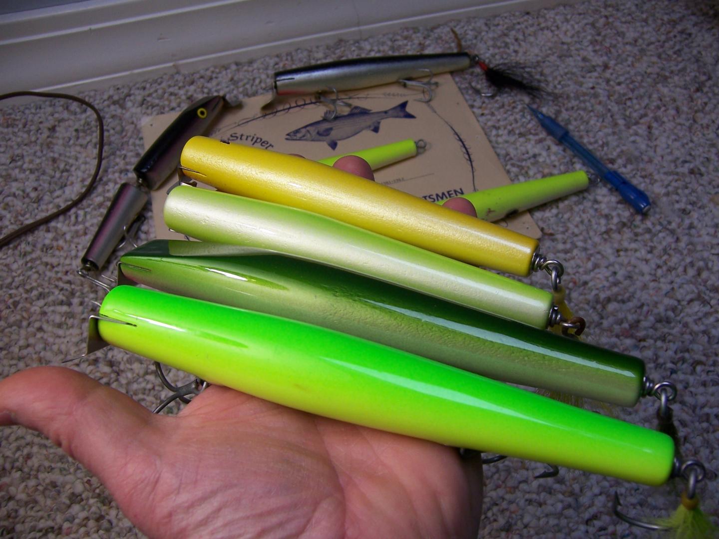 Only plugs I have posted were Beachmaster Schoolie clones and Gary2 Skinny clones. Both are long and slenderish. The Schoolies dive a few feet, but the Skinny is a surface to subsurface lure. I will post some pics of a new design soon. A bit fatter, but a versatile plug.
