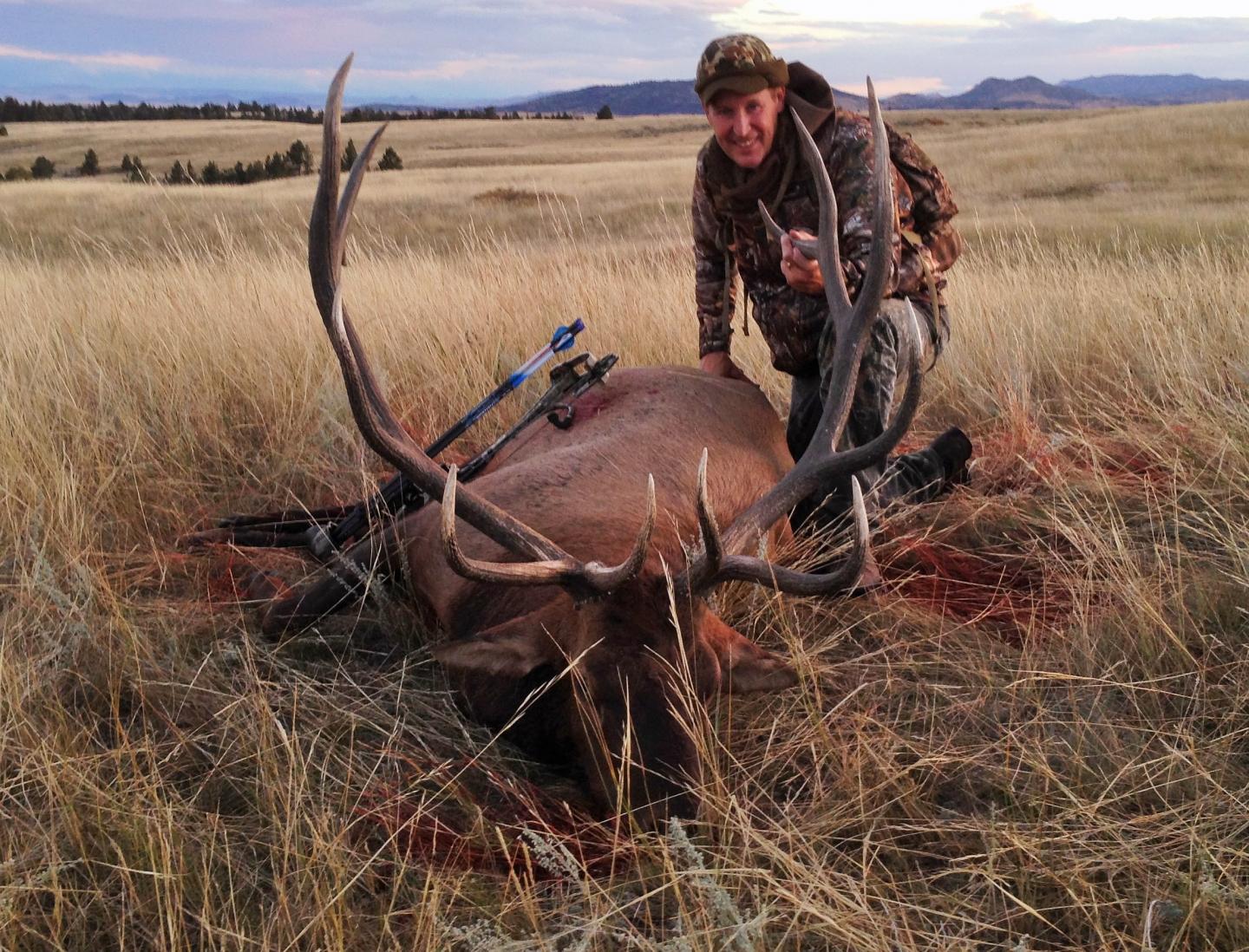 My first elk with a bow, and what a bull he was!! 37 yards, complete pass through, went 95 yards and piled up. Wyoming, area 7 near Wheatland.