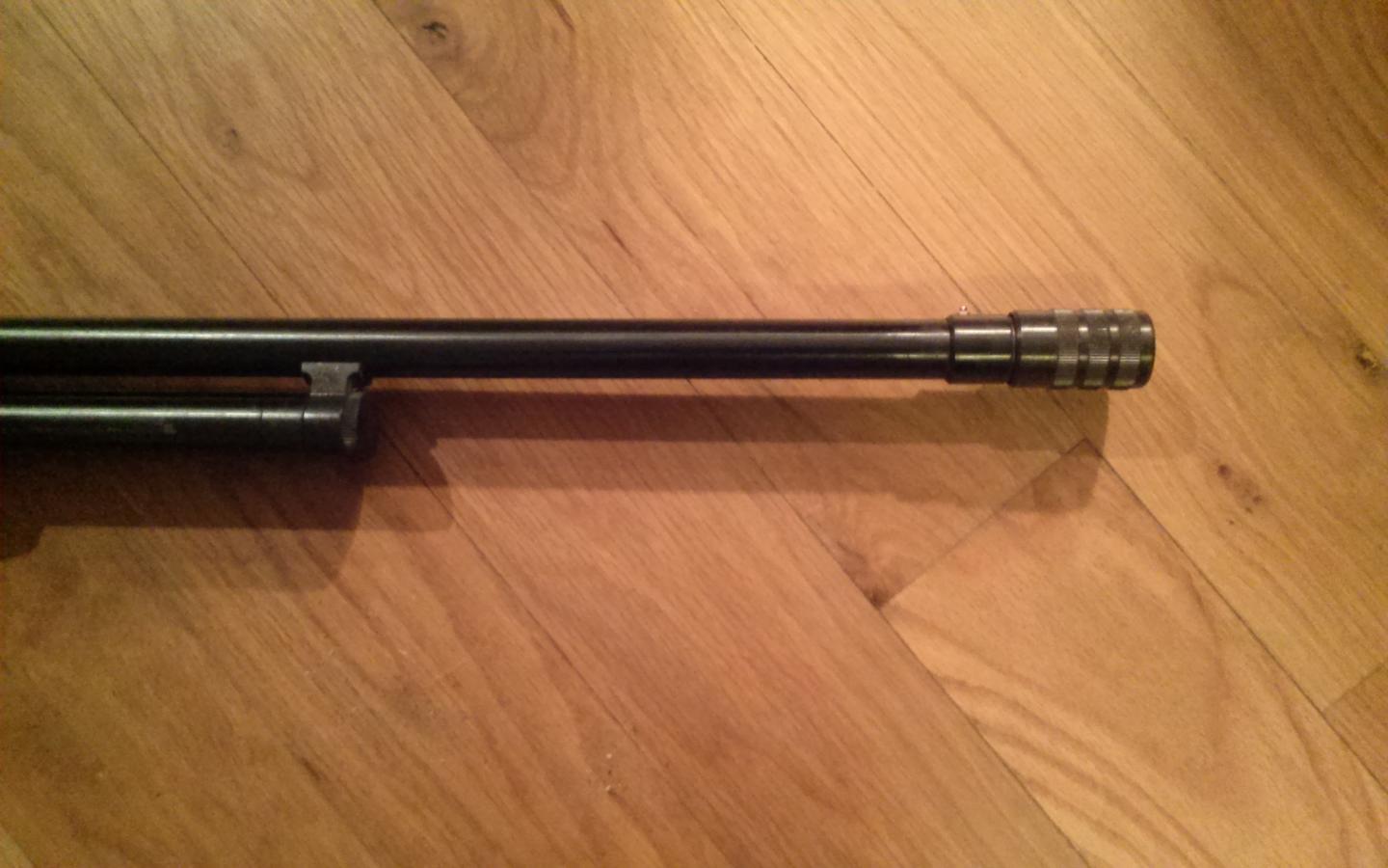 Mossberg 500 with an accu choke. Stock is walnut in very good condition. The bluing is in good shape as well. The action slides as it should and it shoots fine. I think its a 26 inch barrel length. $225
