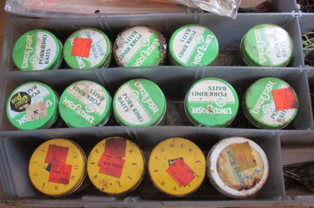 BOX OF JIGS & PIGS ..LOOKS LIKE VERY LITTLE USED ;;