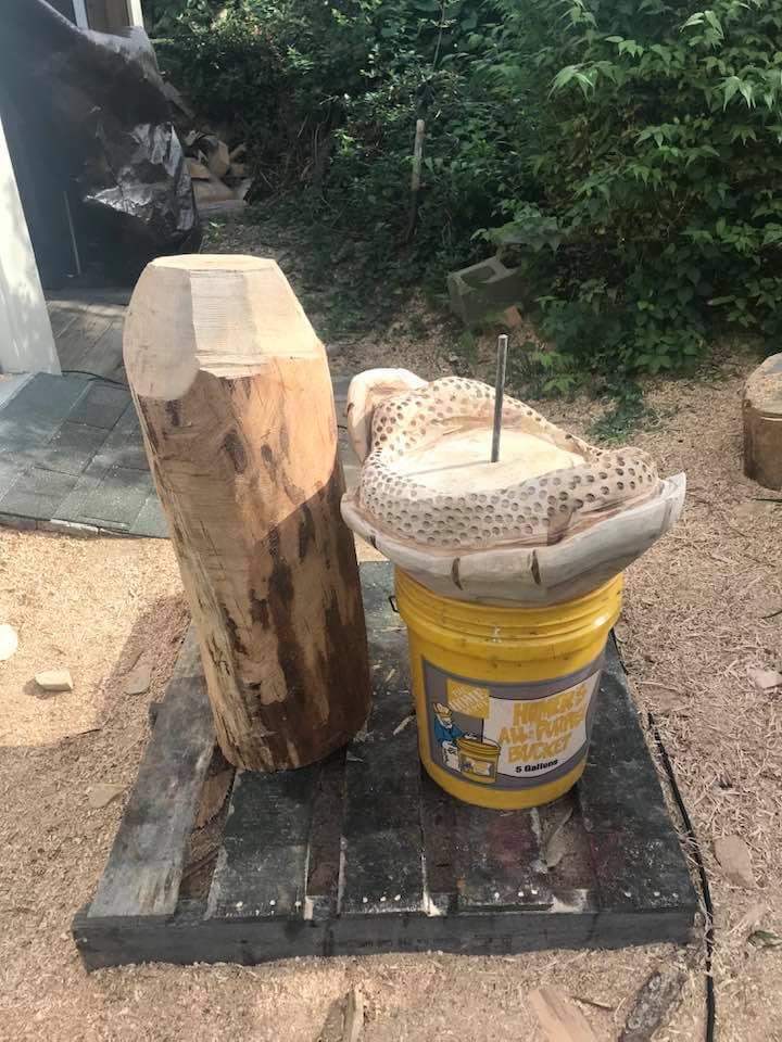 Relative wants a large mushroom, finished up the shaping of the maple cap, lots of carving planned on the stalk which is elm and hard as nails to carve.
