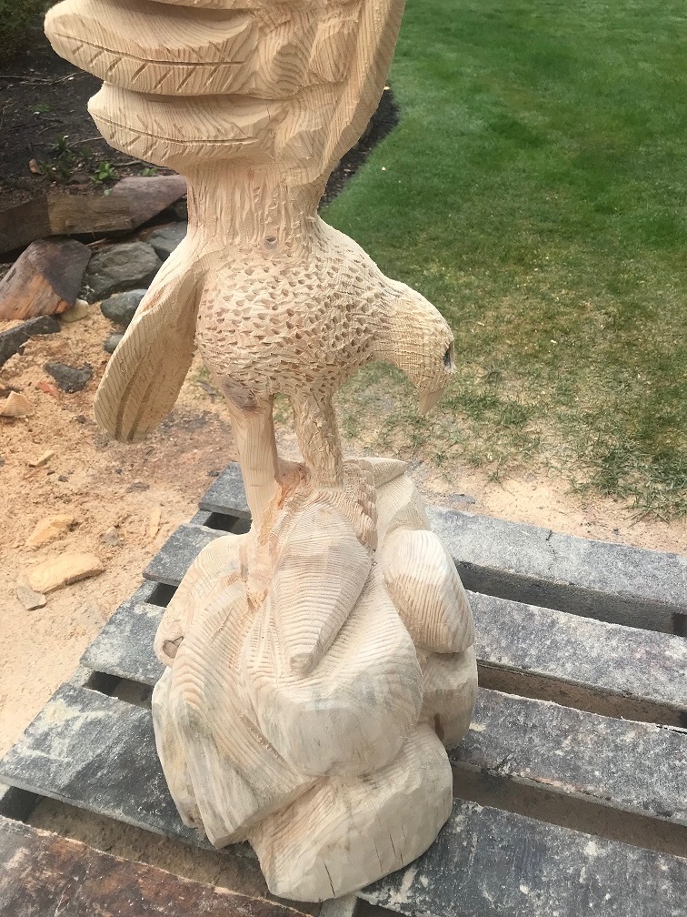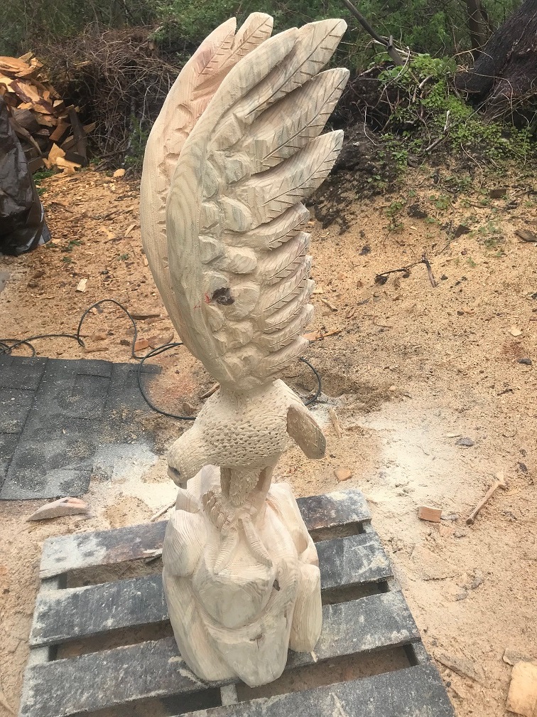 I carve, working on finishing up an osprey, which will go up for sale after burning and finishing if anyone is interested in a cool piece. Last detailing left is the fish, thinking bunker as it will probably look best with natural finish.