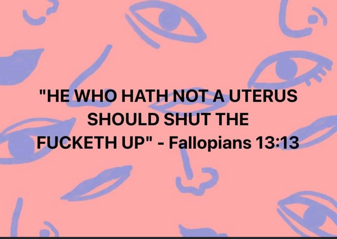 and since you presumably also don’t have a uterus, why aren’t you taking your own advice and staying silent on the issue?