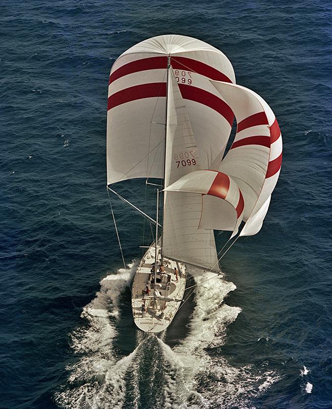 This is Windward Passage. Probably the premier maxi yacht of the early 1970s. I got to sail on her in 1976 and that ended my serious one design aspirations as I just wanted to go fast on big boats. But this 73' girl was special. There was a LOT going on when this much laundry was flying. Only sail missing here is the mizzen. IOR rule made for some of the coolest racing yachts that you could actually live aboard, unlike most of those built today, nevermind the foiling crowd. So when I saw this pic come up I had to share.