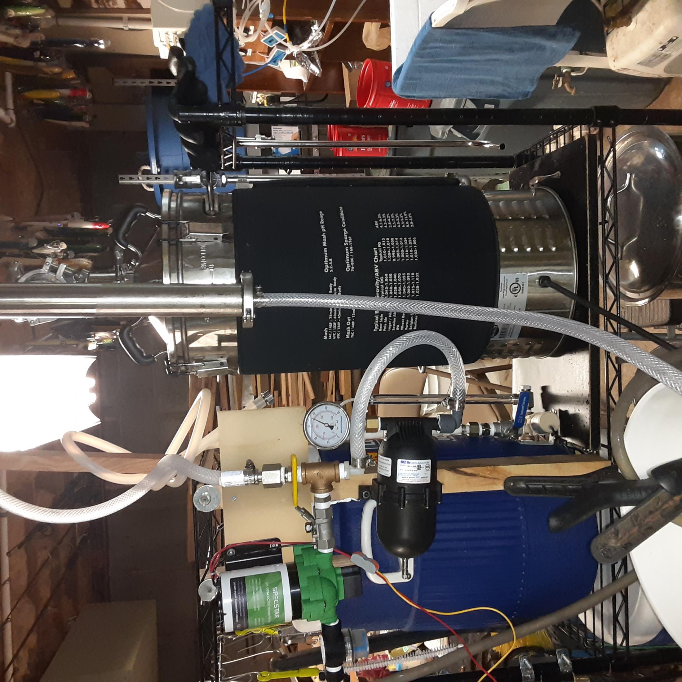 as I Posted in the brewing 2021 thread, I "upgraded" to an electric all in one brew pot ( Brewzilla 3.1.1) with didgital controller and intralegal recirculating pump..this sytem allows precise temperature control over my mash and boil, it has a removable "malt pipe" that serves to hold the mash and is lifted to drain and sparge, allowing for exact volumes and temperature control, I needed a separate system to hole sparge water so I added an inkbird controller, 1800 watt heater element and pump to my original cooler/mash tun to heat and hold my sparge water...once to temp., it will stay within a degree or two for hours.