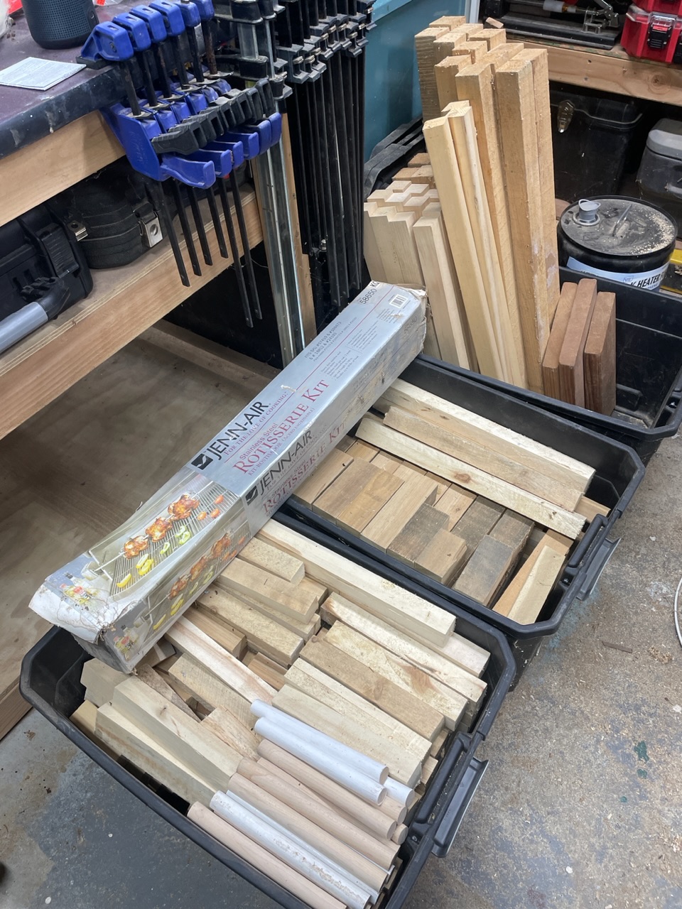 I have 3 crates of plug blanks, AYC, White Cedar, Red Cedar, Maple, White Pine, Cypress, and Mahogany. Should keep you busy for awhile. Throwing in a rotisserie for anyone that wants to make a spinner. Will meet up within reason. Looking for $175/bro.