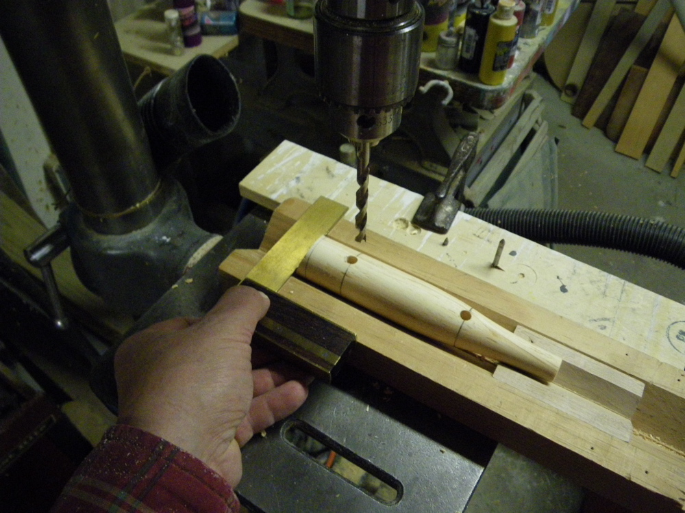 Next I drill the belly holes using a centered V block.