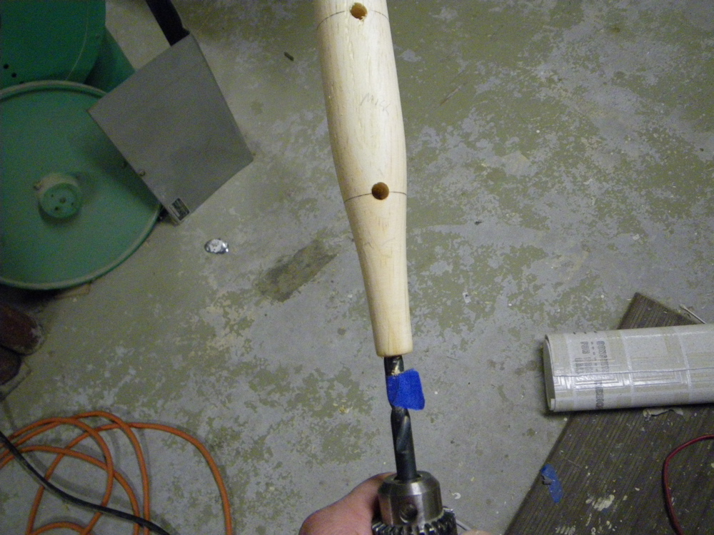 Then I drill the weight hole using a step drill so I stay on center (Paul will undoubtably notice the drill is off line...that is because this body was a misdrill  ). Mark the depth with tape.