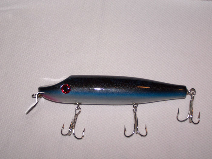 The pikes are 8' + the lip, green one has 5/0 hooks and the blue one has 4/0s
