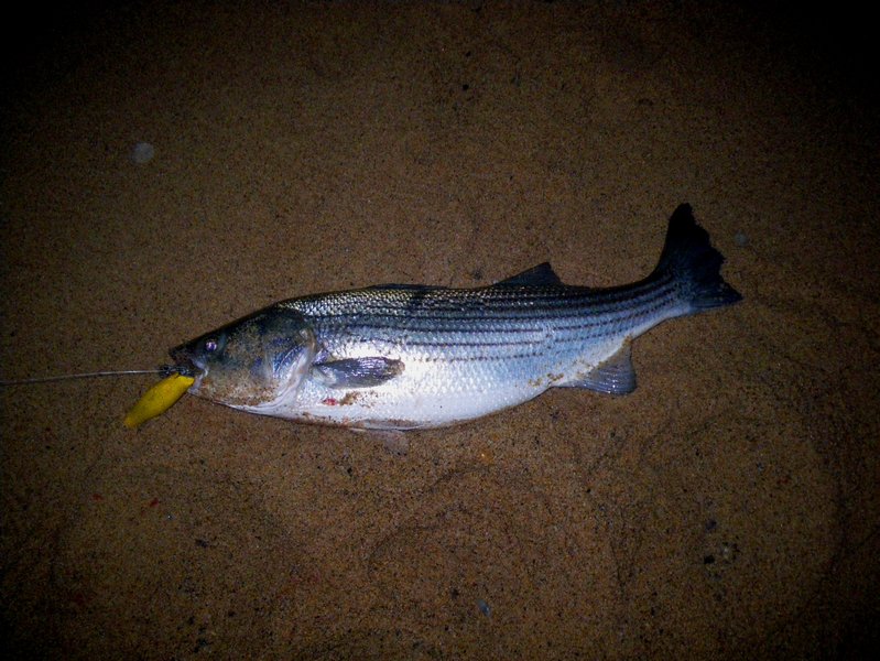 Finally a 1/2 decent fish. Took a cloud Conrad Jr on an otherwise slow night. Great jetty plug.