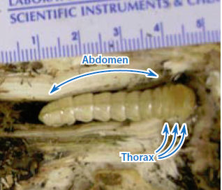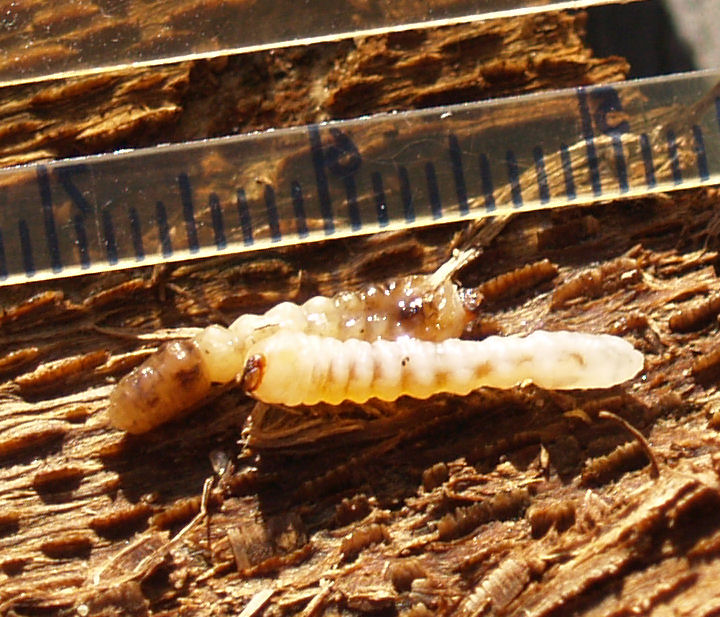 If you google "asian long horned beetle larvae" you will see pics with rulers on them for scale.