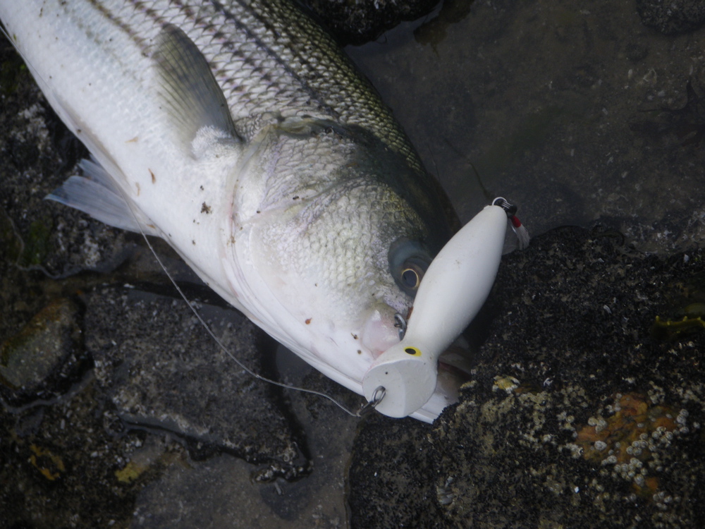 Yikes! I caught one! Only @12-13 lbs, but the first success I've had with these lipless swimmers........which I now feel more confident using. They cast great and swim great, but waves seem to interfere with their action and that sort of negates their casting advantage over metal lips. Pissa swimmer for slow water in the canal, though