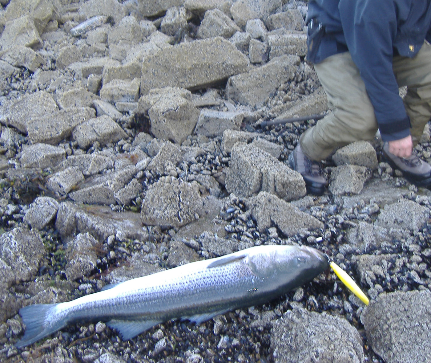 First fish on one of my own plugs.Got this fish on a pollack pencil I made. Its about 2.25 oz and floats with a slight tilt...works real nice on a slow retreive...I feel accomlished, now back to eels...