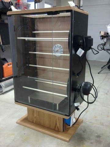Just a box, plexi doors, two bulbs, rehostat, on off switch, 4rpm dayton motor, wire spool, some angle iron and screen door rollers.