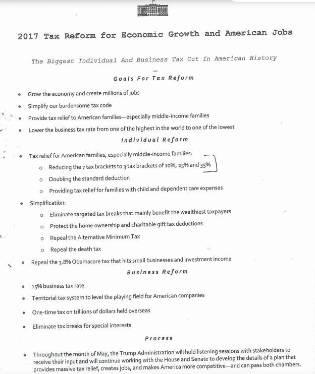 Had a 100 days and Trump's tax plan is only one page.