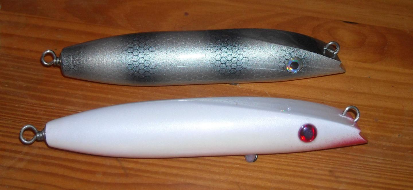 Just e-tex a few plugs. Extras I made Atom Jrs with the A-54 atom lip from M&D's. That lip is half the weight of the Salty jr. 4 grams compared to 8 grams. The A-54 lip is the same thickness as the original. Lightens up the front and I can use a 3/0 front hook and assure the lure on calm water to stay up. They also swam great w/ Salty's lip. Slightly nose down and shallow subsurface w/ 3/0.