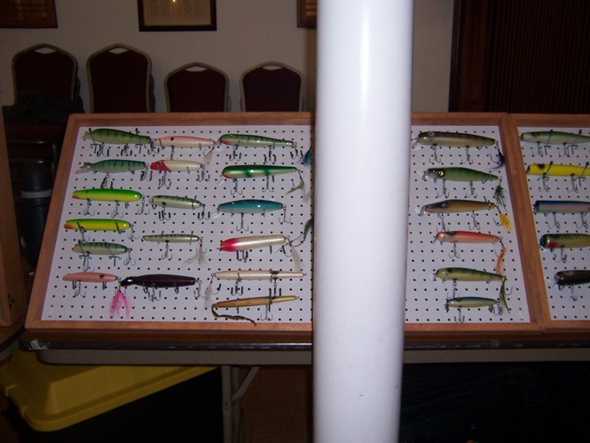 Bill that jig in the first shot was quite the contraption. His homemade display spun 13 plugs for show. Ran off one rotisserie motor, the wood part had what is best described as wagon wheel gear sets ,that thing was cool to look at. He had a different set up on the other side of the table that was pretty cool also.