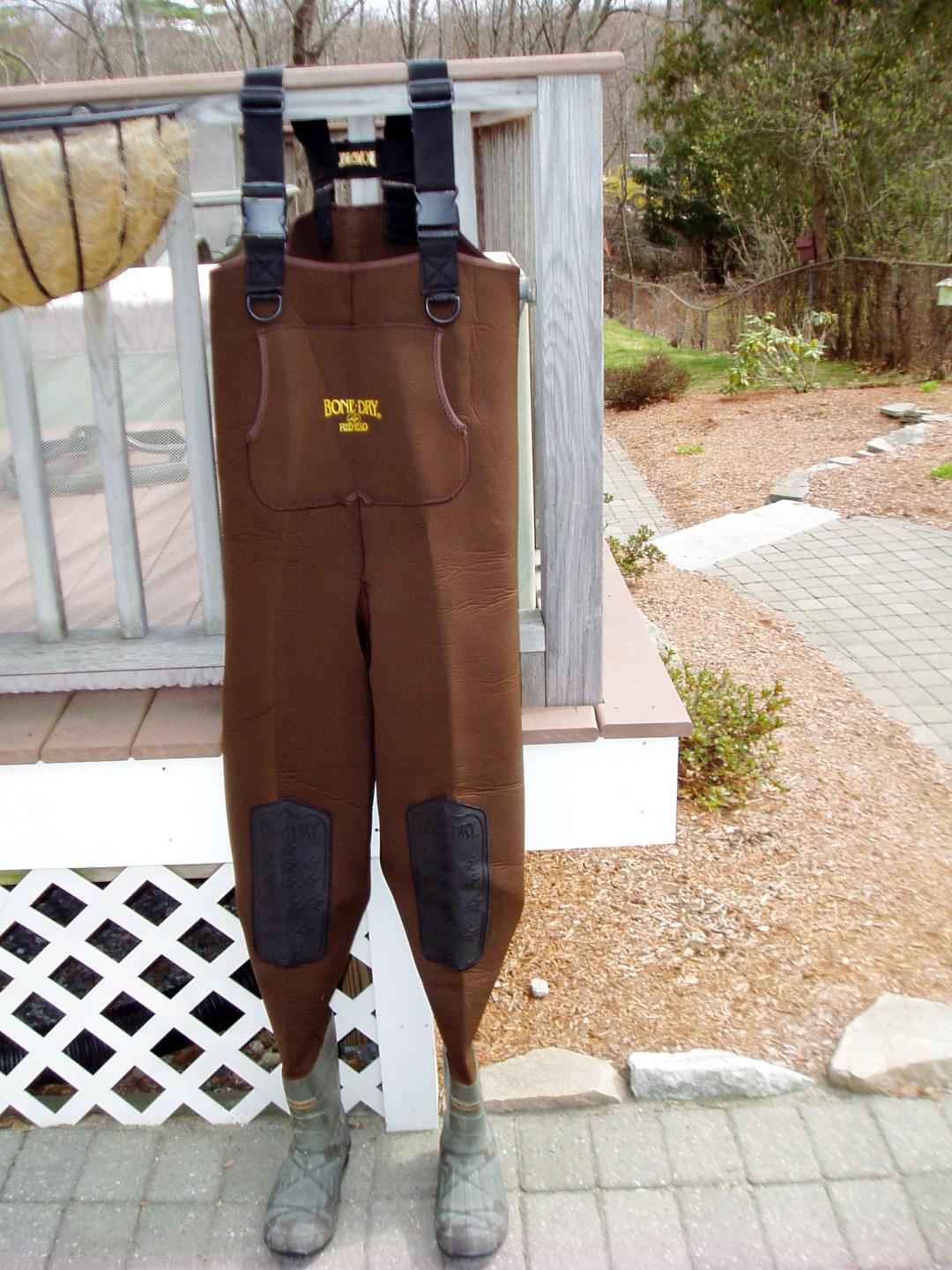 these are felt sole waders, size 9 boot medium. excellent condition, with absolutely no leaks! the boots have darker patches on them from korkers ( see pics) only worn in late fall season.$45.00.