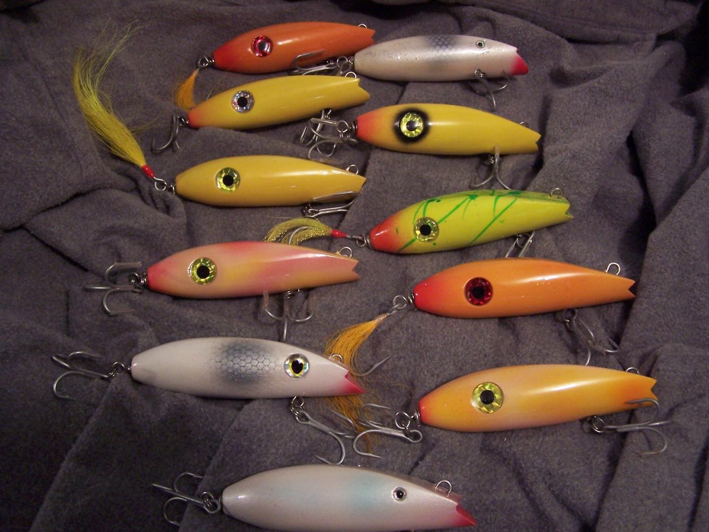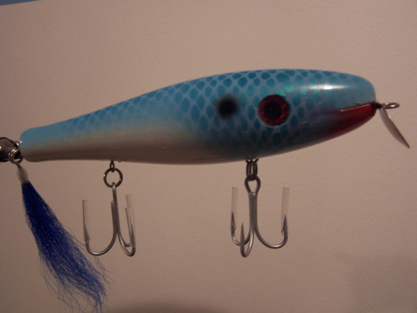 et tal: first is a lure made in surfster and topwater swimmer, cast a huge wake and sits lower in the water than lighter versions.