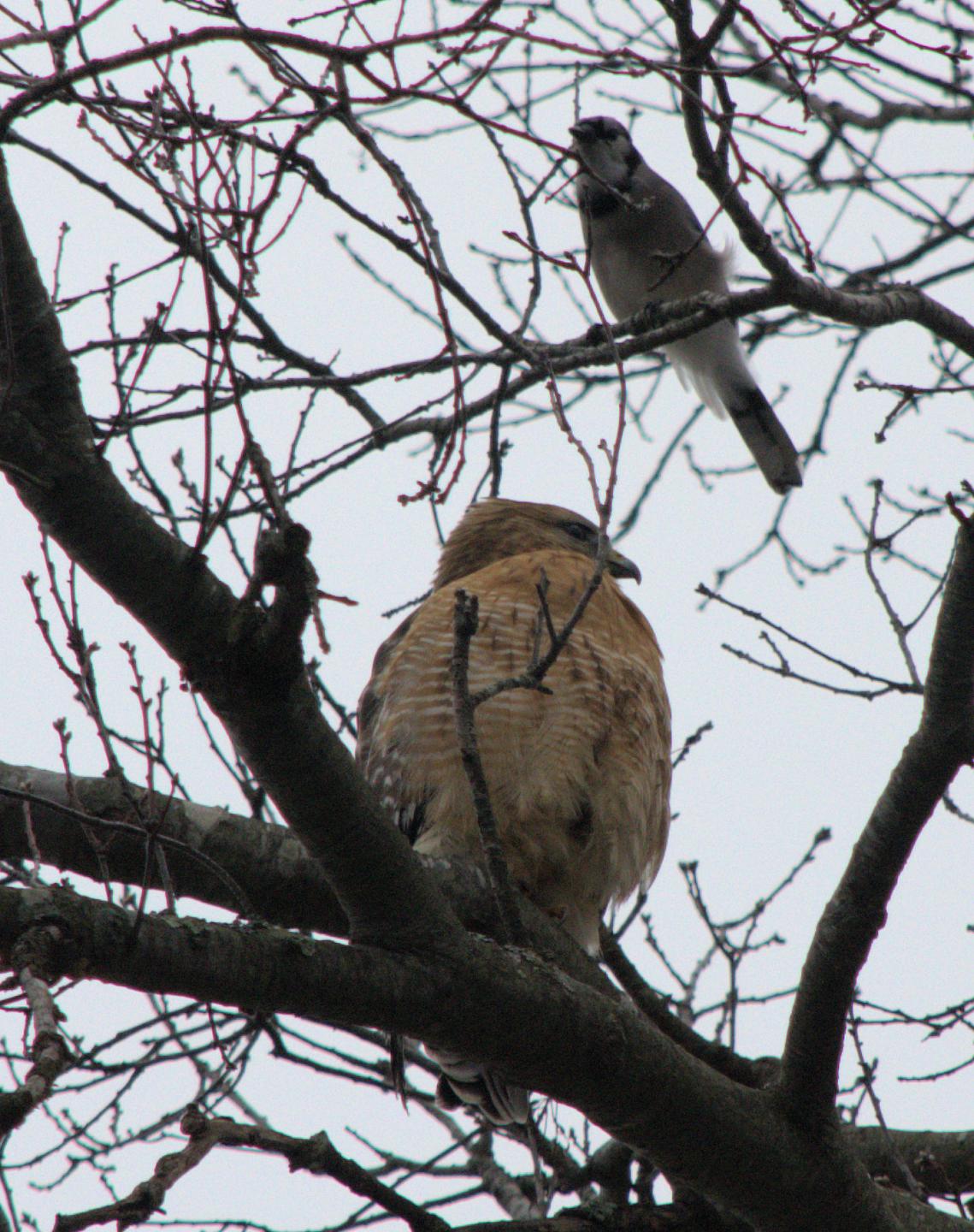 I have a downy woodpecker who literally is camped out on my suit feeder and sleeps there hanging on when not feeding. I've thinned out the squirrels and I've seen some large prints in the snow (when around), that indicates some coyotes are taking the dead ones home likely that I've chucked in the brush.