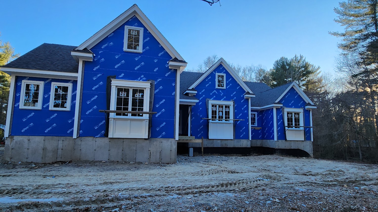 The building lot was quite a bit lower than street level and the entire front yard will be a good sized septic system area for the four and a half baths that will be filled in entirely..... they didnt pay much for the land and the back is walkout with covered decks. it will be good. Pretty big kitchen and cabinets everywhere.