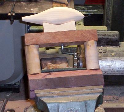 Made the Vise block out of scraps I had laying around ,, purple heart octagon,,birch dowel pilars and hard maple platform .. Almost cut my fingers off making the octagon,, No big deal , I'd fit in with the gang better at the christmas party . I picked up the wrong size wing nut at home depot ,,had to nut it . The brand new spoke shave I got works great ,,the one off ebay needs work .. horrible ., Could have used some files too I think .. This could be even more addictave ..