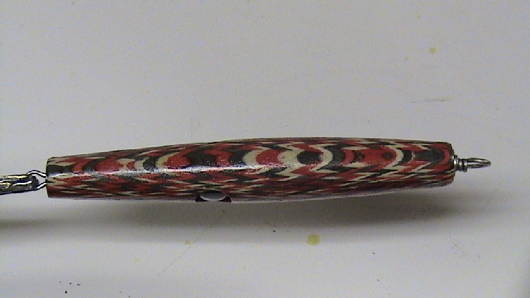 You hit it on the head Eben! I made the needles from Woodcraft pen blanks. They only had 3 colors red, black and a tiger stripe brown that I have not turned up yet. They are just the right size for stubby needles and turn nice. Cool patterns to work with.