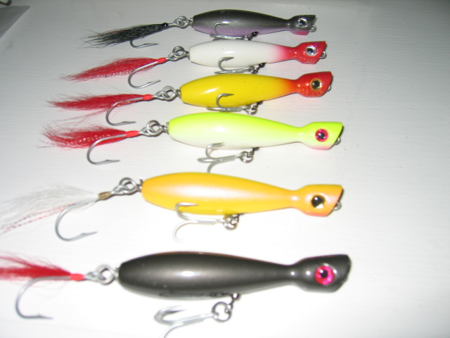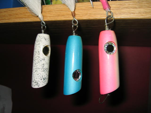 Sold a bunch of those on the other site a few weeks back. I would recommend going after the one ounce size. The same fish that take the 1/2 oz. size will take them and they cast much better. I see them on e-bay every few weeks. All you need is yellow and white and maybe pink.