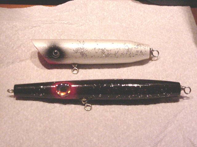 GF, no, the weighting was played with in several different spots (thank God for Famowood Filler) but with all things considered like weight of hooks swivels etc. it eneded up they were weighted pretty close to normal lacations just a wee bit aft of the foreward treble.