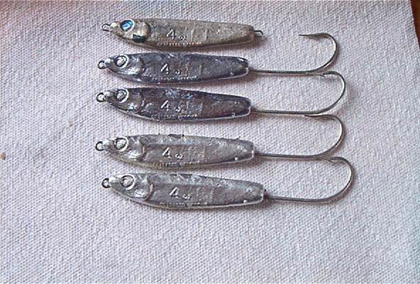 The lead ones are much, much cheaper to make, so I'll probably make a bunch of them and and just spray paint them the colors I want. I think I have a can of chrome spray paint kicking around somewhere... the good thing about these, is when they get too beat up from the rocks in the canal, i can just hit em with the torch, melt em back down and start over.