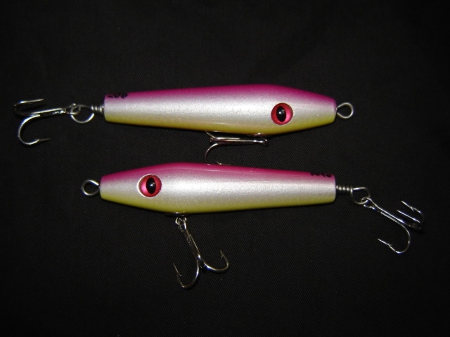 I made these two spooks for the trip back to Galveston next month. they are 3.5" and weight in at 3/4oz. They are weighted a tad before the butt end and sit awesome.