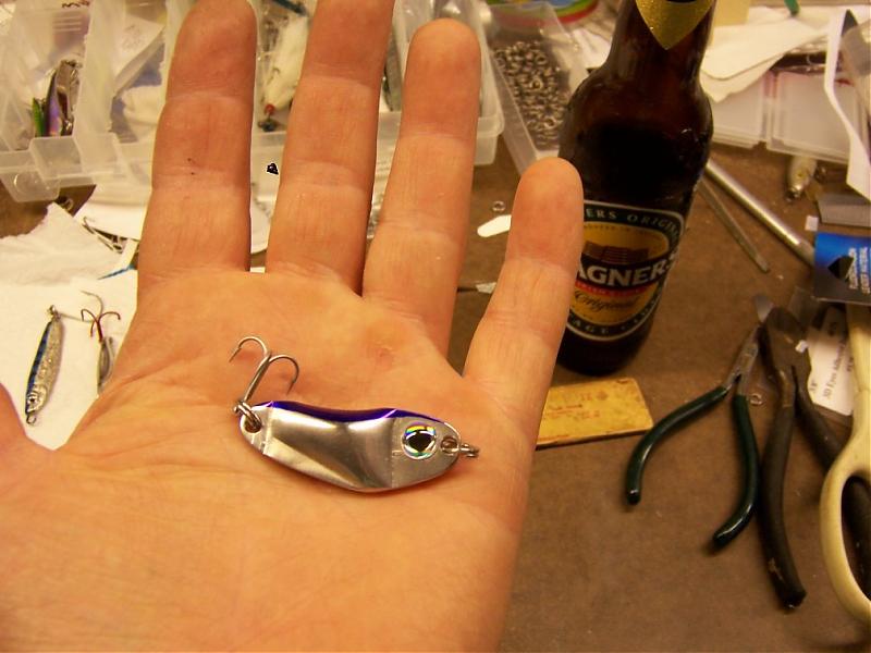 I am going to be rich   . Thanks guys you are great for my ego. They are hollow , so to remain light, so they don't drop down out of the frenzy too fast. I will try to stick some rattles inside a few to see what happens. I have yet to try some larger ones. The larger they get the harder it is to persuade the stainless but I will try a few this off season. The worse part of making them is they get so hot so fast. Stainless is a great conductor of heat so I have burned my fingers several times. Funny as I tried something similar a few years back but gave up on it but since George got me addicted to this I revisited the idea. Still need to do some experimenting on making them but that is half the fun. My stainless thin needles and these all came from an idea i got from an earing my wife had that I was looking at. She thought i was gazing into hear eyes in an affectionate way  and I was thinking fishing lure.  P.