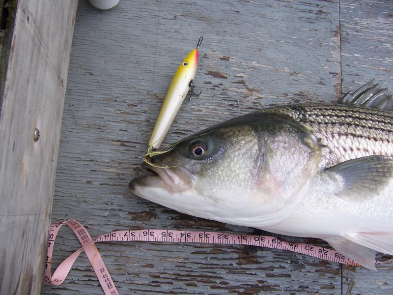 Nice catches guys. Some pics from last week. The shallow water, top water fishing was to die for with larger fish each time I went out. The best day I forgot the camera. Anyway my yellow howdy in red cedar is my usual go to plug, thanks John, but had very good luck with the spooks I made over the winter like the red headed one and one in yellow and a green top white bottom one too. Also had real good luck with a yellow howdy that had the bottom flattened like a hawg hunter. Caught pissa but a fish stole it on me. Had a different action, which I liked. Its all about the strike for me . You could take the hooks off and I would still have a ball.
