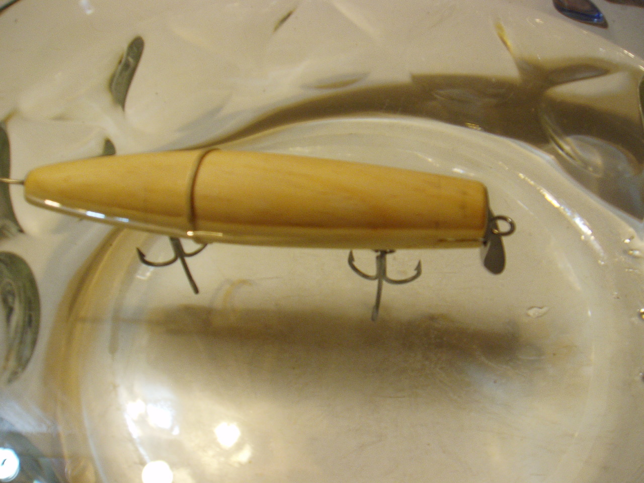 The ones I built used 1/0 hooks and no split ring. They float with the water just above the lip slot (maybe 1/16th) and the water just above the minimum diameter at the tail (with a bucktail and no tail hook). They tend to want to dive a bit more than I like, but will stay on top as long as I keep the retrieve slow. Eskimo told me his stays up better, (but he is younger than me so maybe that is expected).