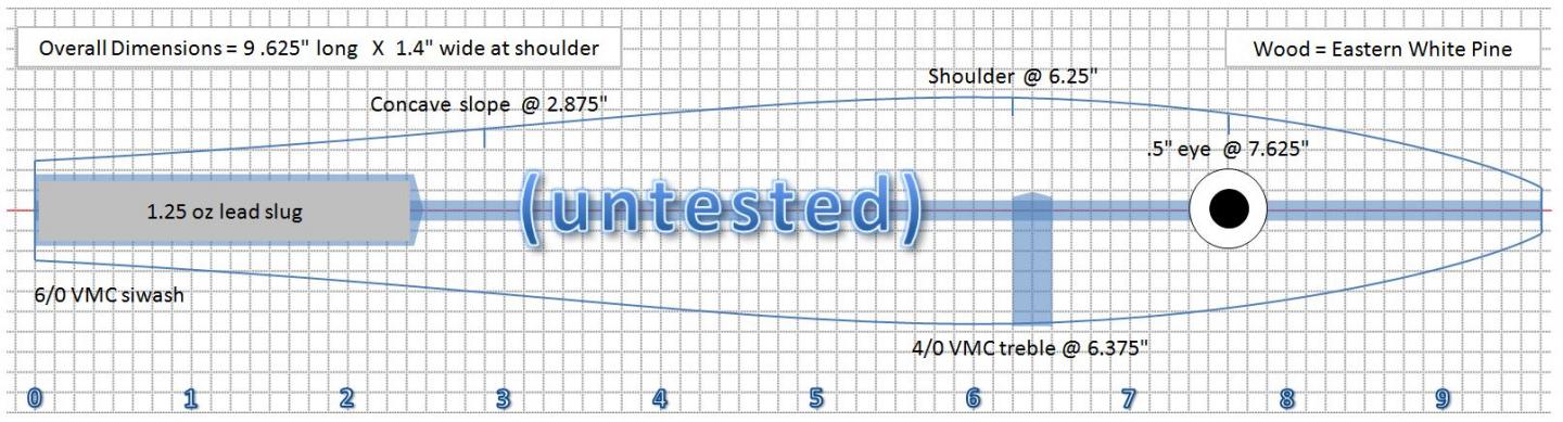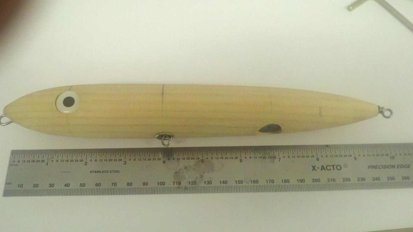 I am having a heck of a time with this spook design. It won't walk. Don't know if you can see the dimensions, but it's 10" long. I've tried pine, AYC, white cedar and Spanish cedar. It sounds like from reading the posts that I might not have enough weight in the rear(?)