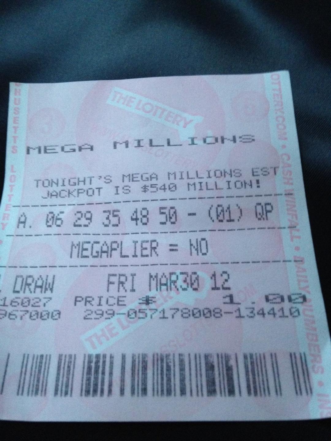 Go out and get $2 in tickets, post a picture of ticket in this thread so we can see the numbers (cell phone pic, camera, scanner) and that will be the pool.