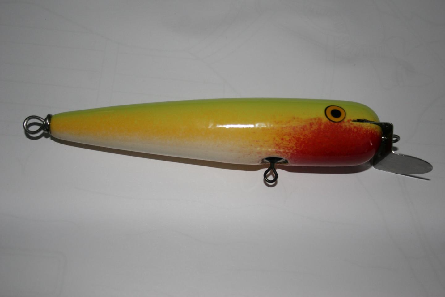 Handcarves are my new obsession! The yellow one is a 7" redfin copy, the middle one is an 8", I wanted a slightly larger plug, the 3rd one is 11" around 4 oz , the mackerel paint was done by Jmac, they look lifelike!