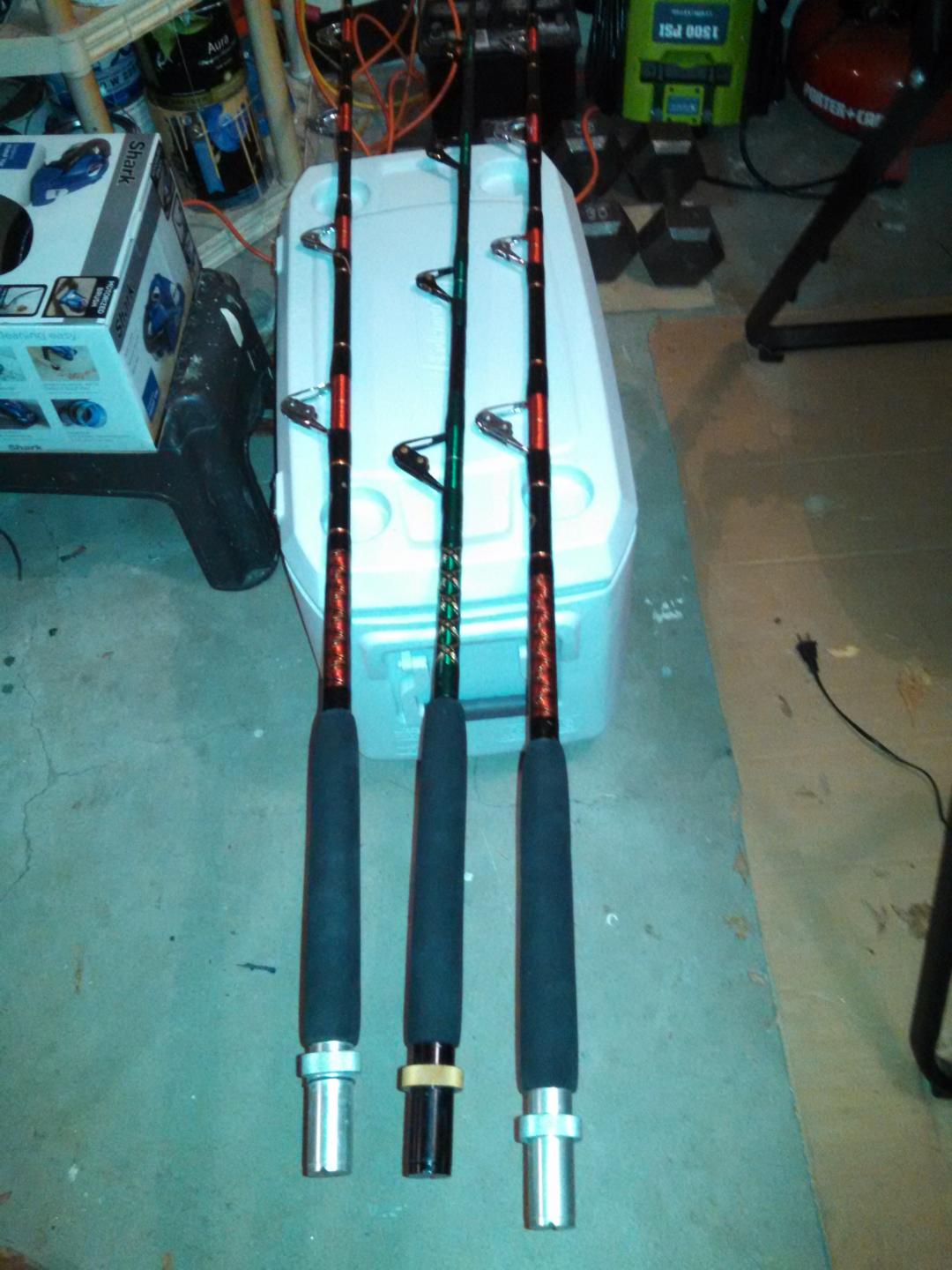 3- Penn 80TW Single speed on custom 130 Class Custom Fisherman Outfitters Bent butt rods.