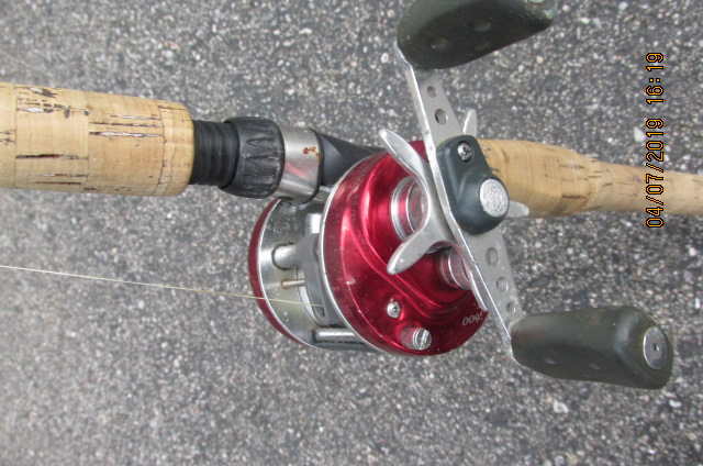 one red Abu Garcia 5600