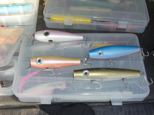 Finally finished my first few plugs, so I did what any self-respected guy would do, bailed out of work and went to test them and some others on the river. It was great being out again. I was lucky enough to get my hands on a few of guzz's plugs, a gary2, a bassholl, a fixter, a bernzy and some salty's . Having made some "plugs", if you want to call them that, has given me a new appreciation of the what goes into making a plug that not only looks good but swims good. Anyway, all of mine had to much roll, the yellow/orange swam the best, followed by the blue danny, the others two need a lot of work. What causes excess roll, too thick in the middle, not thick enough in front, high center of gravity...? I know it has been said before, but thanks for being generous with your knowledge, it makes a big differnece. I need to go find something else to test tomorow. Thanks