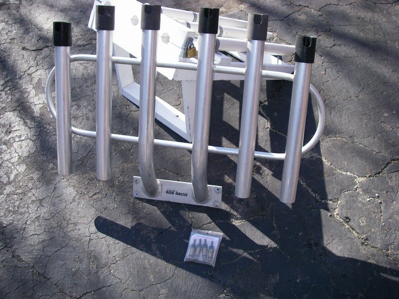 aluminum 6 rod rack, 4 tire buddyII s and bed mount rocket launcher. $100 come and get it. I have a folding shovel I'll throw in as well.