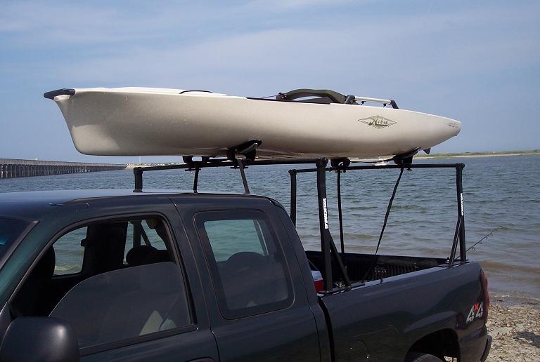 Bought brand new last July and used a half dozen times! It just does not suit my super heavy Pro Angler kayak so I need to sell it and buy a small trailer! Will fit most full size trucks! 60" bars, 2 sets of Mako saddles and 1 set of Hulley Rollers.....$350 firm! You pick up or could meet!