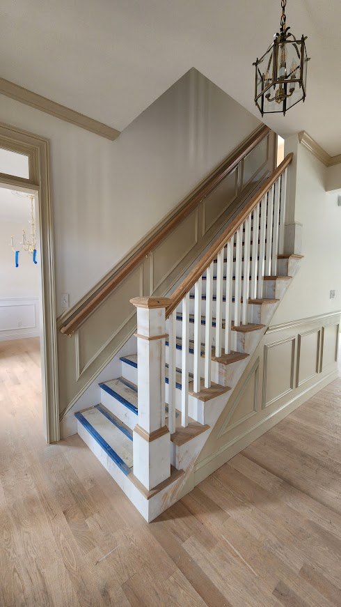 This last house we finished had lots of different color walls and trim....and even wallpaper. Most houses we do get one color throughout by owners choice.