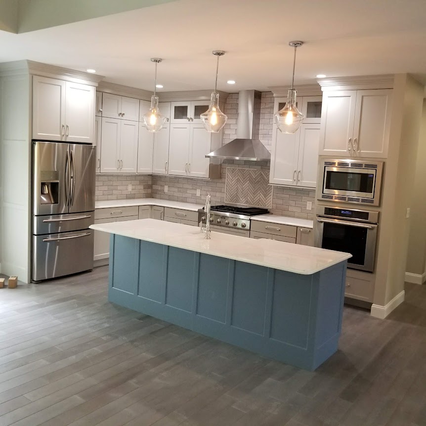 The last one with the blue island looks nice though I don’t care for the fridge. No issue with French Doors but fridge drawers are a failure point so why add another pair. Also not totally loving the floor choice but I’d need to see it in person before I render a final verdict. Not really a fan of wood or wood finishes for a kitchen.