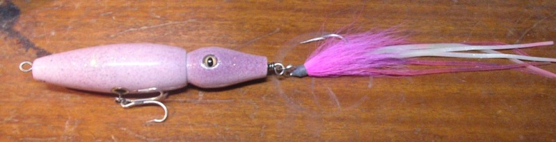 been messing with squid plugs, there is a nice run of squid by me in the spring, hoping this guy will catch. heavily weighted in the rear so the tail pulses as it falls and is jigged back up