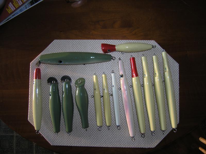 here area few pics of the plug compared to the larger size one. The mack is Tagger the large olive is Tobias. The smaller ones I made and an original is on the bottom.