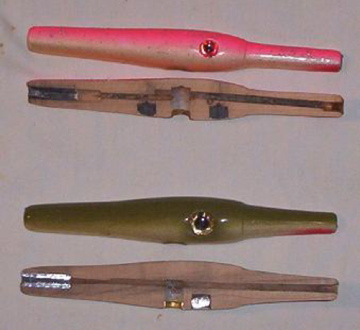 Flap built some "floaters" as he called them that were just tail weighted and floated vertically with the nose just out of the water. They would straighten right out and wake as he retrieved them. They were very small by my standards but I saw him take a #40 fish with one.