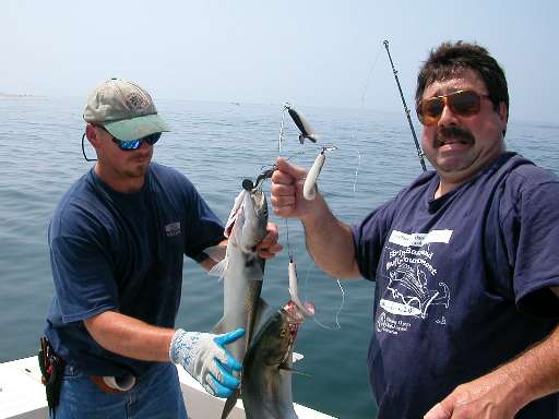 A friend of mine was talking with one of the tugboat operators on the other side who claims he saw a small boat go through the opening, then hook up and land a nice size striper. He hailed the fisherman with his loudspeaker and had him hoist up the fish. He said it looked like a 30 pound fish -- he was looking through his binoculars and got a good view.
