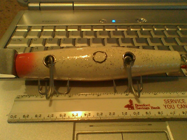 Good Morning all. Have you guys had a chance to clean up the saw dust from the week? I filled a 30gal. garbage pail!! On weighting Dannys; I use a 1/2" diameter belly weight slug low to the belly. I feel the lower the weight the harder it is to pull the belly up. I have a few Bm style dannys I made. they swim extremely well. very little roll w/a nice slow side to side. Pinching up the lip sides a little helps somewhat.