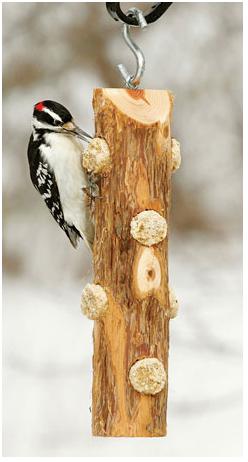 Made a log suet feeder for the woodpeckers and added it to the station. Now it is the wait game. Made it like this (Duncraft), but with poplar.